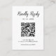 O design minimalista romântico apresenta uma tipografia preta elegante e adorável em um fundo branco com uma aparência limpa e simples. Este cartão de convite de resposta com código QR editável de caligrafia preta delicada é perfeito para um casamento moderno.