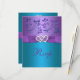 Este belo cartão de resposta de casamento floral roxo e azul turquesa tem uma fita ROXA IMRESSA e um par de jóias de diamante IMPRESSAS e corações unidos com BRILHO FALSO que combina com o convite de casamento mostrado abaixo. A escolha do papel é personalizável. Se você precisar de outros itens correspondentes, por favor envie um email para niteowlstudio@gmail.com.