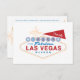 O icônico design do letreiro "Welcome to Las Vegas" aparece na frente com a inscrição "RSVP". O verso tem área para o nome do convidado com "responda antes da data", aceitação e opções de refeição.