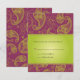 Desenhos paisley verdes sobreimpressos em um fundo roxo rico. Texto de casamento personalizado fica em um painel gradiente verde lima. Ótimo para um casamento temático do sudeste asiático ou quando você quer fazer uma declaração calorosa e ousada. Disponível em cores alternativas com produtos correspondentes.