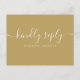 Um cartão de resposta com assinatura em ouro elegante e tipografia chic. O verso apresenta seus detalhes e um divertido pedido de música para convidados. Criado por Thisisnotme©