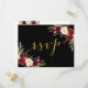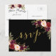Elegante cartão-postal de resposta para casamento com efeito de pintura à mão em aquarela floral vintage e escrita com folha dourada falsa em fundo preto. Elke Clarke © Outras cores disponíveis em www.zazzle.com/monogramgallery. Um convite de resposta simples, porém versátil, com letra manuscrita para casamentos ou outras ocasiões especiais, como jantares de ensaio, chás de casal, celebrações de aniversário de casamento. A folha dourada é um efeito de foto impressa.