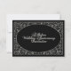 Um design de imagens Digitalbcon com um tema de cores preto e prata com uma variedade de imagens personalizadas, formas, padrões, estilos e fontes neste exclusivo cartão de convite de resposta para Aniversário de Casamento de Bodas de Prata. Este convite elegante e atraente vem completo com um design correspondente no verso com letras de texto personalizadas para se adequar à sua ocasião especial.