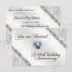 Um design de imagens Digitalbcon com um tema de cores prata e diamante com uma variedade de imagens personalizadas, formas, padrões, estilos e fontes neste cartão de resposta de aniversário de casamento de diamante único. Este cartão especialmente projetado vem completo com um design correspondente no verso com letras de texto personalizadas para atender à sua ocasião especial.