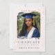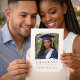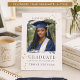 Tema de retrato de formatura moderno com sotaques de confetes dourados quentes em um fundo de creme suave. Layout limpo focado em fotos com tipografia serif clássica destaca o retrato do formando, adequado para anúncios de formatura do ensino médio, reuniões de celebração de formandos e eventos de formatura em família.
