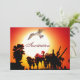 Gaivota voando sobre as pessoas & palmeiras, arte em uma cor laranja-amarelo. você pode personalizar este convite.