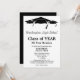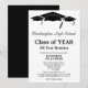 Este design de convite de reunião de classe minimalista em formato vertical apresenta texto preto em um fundo totalmente branco com três boinas de graduação pretas como borda superior. O verso do convite é preto sólido. Personalize suas informações, remova informações ou edite usando a ferramenta de design para selecionar a cor, tamanho e estilo da fonte de sua preferência.