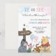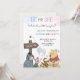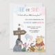 Convite para uma revelação de gênero com o Ursinho Pooh, Leitão, Eeyore e Tigger. Apresenta cores pastéis, balões e imagens lúdicas e alegres.
