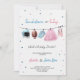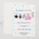 Frente de um convite de revelação de sexo com um futebol, tutu e sapatilhas de ballet em um varal. O texto lê "Touchdown ou Tutus?" em cores pastéis.
