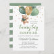 Convite de Revelação de Sexo com Balões em Verde Sage e Dourado e Urso de Água. O design apresenta um layout de texto elegante e moderno. Para fazer alterações avançadas, selecione a opção "Clique para personalizar ainda mais" em Personalizar este modelo.