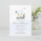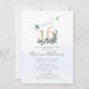 Este design de rosas Peony azul Centáurea inclui elementos botânicos para um ambiente rústico e campestre. Folhagem exuberante e fundo azul empoeirado desbotado.