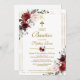 Flores Vermelhas e Dourado convite de batismo para bebê impressa por Barato de quadros. Este design bonito tem uma cor d'água vermelha flores com moldura de ouro. Personalize a design com os detalhes da festa Baptism do seu filho. O verso tem uma cruz dourada com flores de aquarela ou usa o espaço para adicionar texto e fotos adicionais. Clique em Personalizar para escolher qualquer cor de fundo e editar as fontes de texto e as cores para criar um convite Baptism exclusivo para a sua bebê.