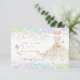 PixDezines save the date de quinceanera - apresentando um vestido de aquarela brilhante em branco e dourado. Acentuado com fundo pastel e borboletas.