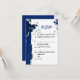 O convite de RSVP para celebração de casamento artístico com respingo de tinta azul real. O design dá liberdade para alterar o preenchimento do fundo azul. Ao combinar o fundo com as cores do seu casamento, lembre-se de modificar a cor da fonte. Para personalização e perguntas sobre o design, entre em contato com https://kbmd3signs.com/contact/.