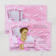 Convite de RSVP para Chá de Bebê Afro-Americano Rosa com cadeira rosa doce, fitas e laços. Este convite de chá de bebê afro-americano rosa é facilmente personalizado para o seu evento, adicionando detalhes do evento, estilo de fonte, tamanho e cor da fonte e texto.