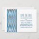 Anúncio de Salvar a Data com Borda de Chevron Chic e Moderno, apresentando um padrão de borda de chevron simples em azul escuro e branco. Este design elegante definirá o tom para um casamento sofisticado. Fácil de personalizar, basta adicionar os detalhes do seu casamento nos campos de texto fornecidos. Clique em "Personalizar" para encontrar mais opções de personalização.