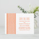 Anúncio de Salvar a Data com Borda de Chevron Chic e Moderno apresentando um padrão de borda de chevron simples em laranja e branco. Este design elegante definirá o tom para um casamento sofisticado. Fácil de personalizar, basta adicionar os detalhes do seu casamento nos campos de texto fornecidos. Clique em "Personalizar" para encontrar mais opções de personalização.