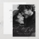 Anuncie seu casamento com uma elegância atemporal usando nosso convite de Save the Date de Foto com Roteiro Romântico. Este cartão lindamente elaborado apresenta uma foto em preto e branco do casal, acentuada pela tipografia de caligrafia manuscrita, adicionando um toque pessoal ao seu anúncio. O design minimalista é complementado por um código QR moderno, facilitando que seus convidados acessem mais detalhes sobre o grande dia. Perfeito para casamentos clássicos e contemporâneos, este convite captura a alegria e a emoção da sua celebração que se aproxima. Certifique-se de que o seu dia especial seja lembrado com este save the date deslumbrante e sofisticado.