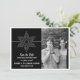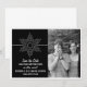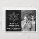 Anuncie o seu casamento com tema de férias ou inverno com este Anúncio de Salvar a Data com Foto do Doce Floco de Neve. Com um delicado e elegante floco de neve branco e listra fina em um fundo preto sólido, este design divertido é fácil de personalizar. Basta adicionar sua própria foto e detalhes do casamento nos campos de texto fornecidos ou clicar em "Personalize" para encontrar mais opções de personalização.