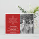Anuncie o seu casamento com tema de férias ou inverno com este Anúncio de Salvar a Data da Foto do Doce Floco de Neve. Com um delicado e elegante floco de neve branco e listra fina em um fundo vermelho escuro sólido, este design divertido é fácil de personalizar. Basta adicionar sua própria foto e detalhes do casamento nos campos de texto fornecidos ou clicar em "Personalize" para encontrar mais opções de personalização.