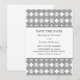 Anúncio de Salvar a Data simples e elegante em Deco Moderno em cinza escuro com um padrão art déco estiloso. Este convite de salvar a data é fácil de personalizar com os detalhes do seu casamento. Clique em "Personalizar" para encontrar mais opções de personalização.