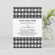 Anúncio de Salvar a Data simples e elegante em Deco Moderno em preto e branco com um padrão art déco estiloso. Este convite de salvar a data é fácil de personalizar com os detalhes do seu casamento. Clique em "Personalizar" para encontrar mais opções de personalização.