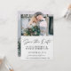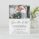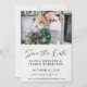 Convite de Salvar a Data Rústico com Duas Fotos na Madeira - apresentando duas das suas fotos favoritas. O convite apresenta madeira de celeiro para uma estética rústica. Perfeito para um casamento de Primavera, Verão, Outono ou Inverno. Mostrado em madeira branca.