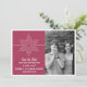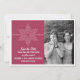 Anuncie o seu casamento com tema de feriado ou inverno com este Anúncio de Salve a Data com Foto de Doce Floco de Neve. Com um delicado e elegante floco de neve branco e listra fina em um fundo rosa fúcsia sólido, este design divertido é fácil de personalizar. Basta adicionar sua própria foto e detalhes do casamento nos campos de texto fornecidos ou clicar em "Personalize" para encontrar mais opções de personalização.