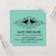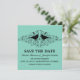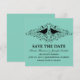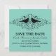 Anúncio de Salve o Dia com Redemoinhos de Pássaros do Amor doce e simples, apresentando silhuetas de um par de pássaros caprichosos e cascatas de floreios elegantes em um fundo turquesa. Este convite de salve o dia moderno é fácil de personalizar com os detalhes do seu casamento. Clique em "Personalize" para encontrar mais opções de personalização.