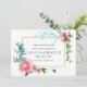 Lindas peônias rosa aninhadas em folhagem botânica moderna decoram uma moldura dourada elegante. As folhas e videiras são de um verde profundo ao azul turquesa. O layout do texto e as fontes são modernos e frescos. O verso também é rosa. Este convite de salve o dia combina com a Coleção Salve o Dia Peônia Rosa. Contém adesivos para envelope, forros de envelope e outros acessórios que você pode usar para tornar seu Salve o Dia único e especial