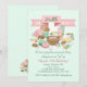 Um convite feminino, adequado para qualquer idade, que é perfeito para uma festa em spa. As palavras "Spa, Saúde, Beleza" estão pré-impressas em uma fita com vários itens de spa abaixo.