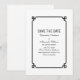 Anúncio de Save the Date Deco Chic simples e minimalista com uma moderna borda ornamental art déco preta. Este convite de save the date clássico e elegante é fácil de personalizar com os detalhes do seu casamento. Encontre mais opções de personalização clicando em Personalizar.