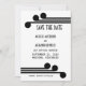 Anúncio de Save the Date Chic Deco Simples moderno e sofisticado em preto e branco, apresentando um par de enfeites de círculo art déco elegantes. Este convite de save the date elegante é perfeito para anunciar o seu casamento inspirado no art déco. Fácil de personalizar, basta adicionar os detalhes do seu casamento nos campos fornecidos. Clique no botão "Personalizar" para encontrar opções adicionais de personalização.