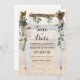Convite de Save the Date de Casamento com Dossel de Arbor de Madeira Flutuante e Guirlanda de Vinha Floral