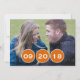 Anúncio Chic e moderno de Save the Date de Círculos Modernos com três círculos laranja sombreados para adicionar a data do seu casamento. Este design elegante é fácil de personalizar com sua própria foto e os detalhes do seu casamento! Clique no botão "Personalizar" para brincar com fontes ou cores de texto.