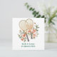 Anuncie seu par perfeito com estilo com este elegante convite de casamento de "Save the Date" de tênis, apresentando duas raquetes de tênis dispostas em forma de coração romântico com flores em aquarela suave. O design inclui uma lavagem de quadra em tom pálido de menta para uma aparência limpa e moderna, mantendo a estética brilhante, minimalista e sofisticada.