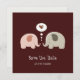 Anuncie o seu noivado / casamento de uma forma não convencional com este cartão Save The Date fofo com ilustração de elefantes apaixonados em desenho animado.