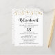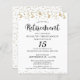 Convites de festas elegantes de aposentadoria, com orçamento, com tipografia moderna de escrita de caligrafia e confete e galerias de ouro e personalizados com os anos de serviço da aposentada. Impresso em papel leve de 4,5x5,6 polegadas em vez de estoque de cartão ideal para entrega manual e orçamentos conservadores. ASSISTÊNCIA: Para obter ajuda sobre modificação ou personalização do design, alteração de cor, transferência do design para outro produto ou se você quiser coordenar itens, entre em contato com o designer ANTES DE ENCOMENDAR, por meio da guia MENSAGEM de bate-papo Zazzle abaixo ou por e-mail para makeitaboutyoustore@gmail.com.