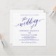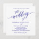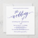 Um belo convite de casamento com um elegante design de roteiro em azul marinho.