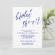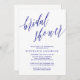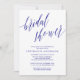 Um belo convite de casamento com um elegante design de roteiro em azul marinho.