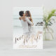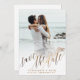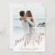 Um belo convite de casamento com um elegante design de roteiro em ouro
