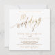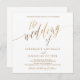 Um belo convite de casamento com um elegante design de roteiro em ouro.