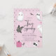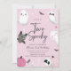 Este convite de dois fantasmas rosa doce e moderno é o começo perfeito para uma festa de 2º aniversário assustador de Halloween.