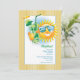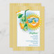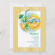 Um convite perfeito do verão para um partido do mojito ou alguma celebração no sol. O painel traseiro tem listras amarelas finas e o sol de sorriso veste óculos de sol e brindes com um cocktail do mojito. O cartão é fácil de personalizar com seus fraseio, pia batismal, cor da pia batismal e escolha de seis tipos de papel.