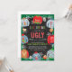 Coma, beba e seja feio na sua próxima festa de suéter feio!! Este convite é a maneira perfeita de convidar os convidados para a sua festa de Natal com tema de suéter feio ou aniversário. Este é um convite de festa divertido, perfeito para qualquer idade! Uma variedade de suéteres feios emoldura o convite com canecas de Natal e azevinho contra um fundo de quadro-negro.