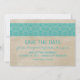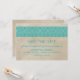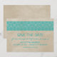 Anúncios de Salvar a Data simples e elegantes com Rustic Lace, apresentando um fundo com aparência de papel texturizado vintage e uma borda de padrão de renda doce e delicada em turquesa. Fácil de personalizar, basta adicionar os detalhes do seu casamento. Clique em "Personalize" para encontrar mais opções de personalização.