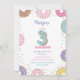 Convite de terceiro aniversário, convite de donut doce, festa de três anos