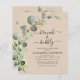 Convites de Brunch e Bubbly dentro do Orçamento com Eucalipto Terracota Verdejante Suculentas Botânicas Aquarela Verde Esmeralda para Casamento Primavera Chá de Noiva em fundo branco - inclui tipografia de roteiro bonita e elegante com folhas botânicas modernas e verdejante para a celebração especial da Noiva