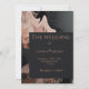 crie um convite elegante para casamentos no inverno de outono com um design impressionante com uma paleta de cor Rosa dourada clara e elegante e tons luxuosos de textura de mármore preto.