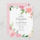 Este belo convite de cartão postal para festa Quinceañera floral rosa apresenta lindas flores em aquarela e folhas verdes acima de uma tiara prateada brilhante. Um convite de cartão postal feminino e delicado para o 15º aniversário da sua filha adolescente. Peônias delicadas e femininas criam uma borda adorável em torno da elegante escrita cinza.